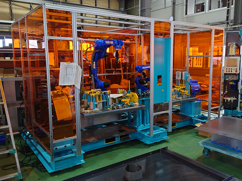 ロボット溶接での低スパッタ化を実現させ、溶接後の品質向上させた設備。