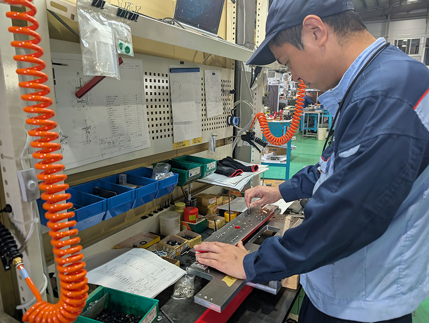 また、出来上がった設備の各種調整や実際に組み付けも行ったりたりと、幅広い業務を臨機応変に対応しています。