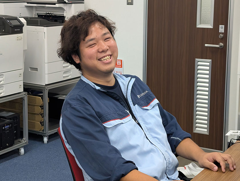 工作など物を作ることが好きで興味があり、職場の雰囲気を見た所「加工機等を操作して加工品を作り上げ、またその加工品を組付けて1つの設備が出来上がる」という話を聞いたときに、自分の力を発揮できる場所だと思い、ここで働きたいと思ったので入社を決意しました。