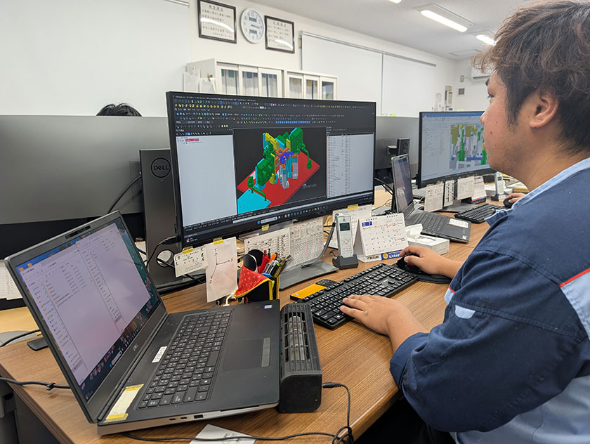 それ以外にも、材料の手配や外注先への加工依頼といった業務に加え、切削機などを使用した実務作業も行っています。